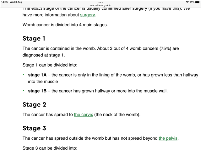 Hi Jane, from Macmillan www.macmillan.org.uk/.../womb-cancer-stages